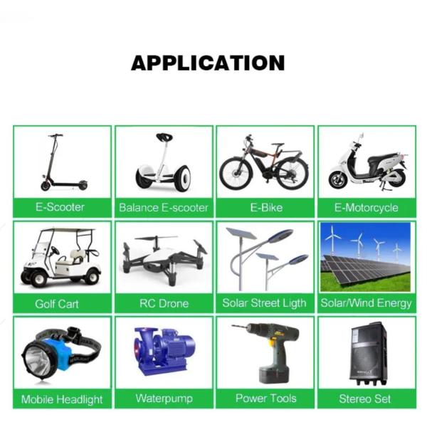 | Application | Tools, toys, electric bicycles, escooter , energy storage |